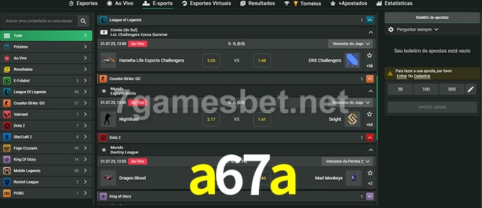 O a67a oferece uma grande seleção de opções de apostas em e-sports com probabilidades competitivas